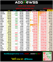 | SA | 30/08/24 | 7.60 | (#KH) SA ปั๊มรายได้ปีนี้พุ่ง 5-6 พันล้าน ตุนแบ็กล็อก 7.1 พันล้าน จ่อเปิดโรงแรมแห่งใหม่ Q4 นี้ |