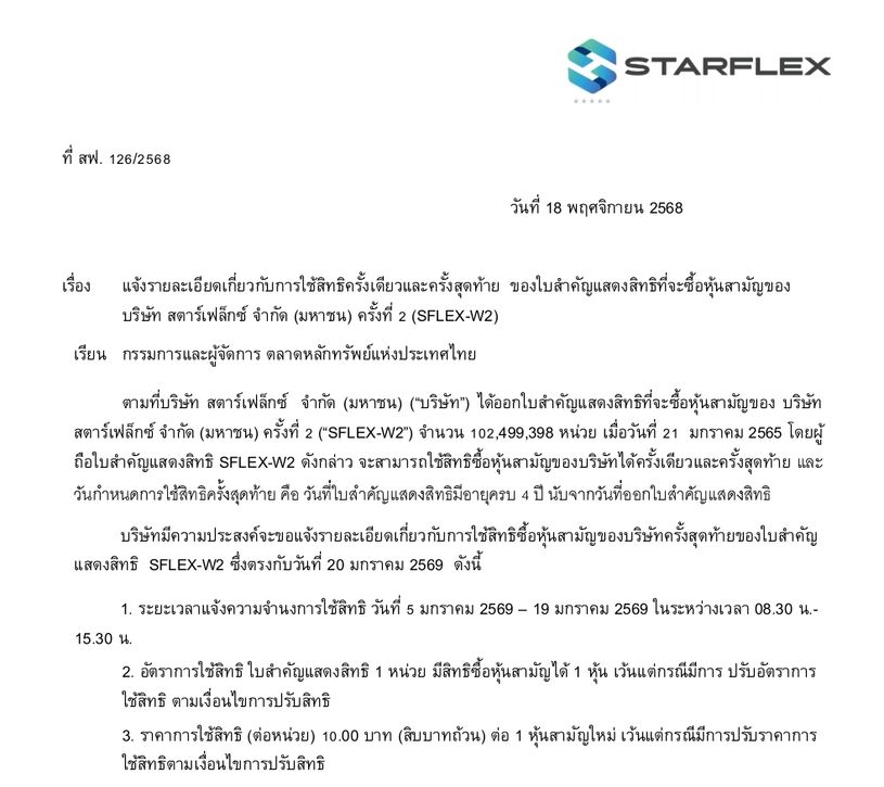 SFLEX บริษัท สตาร์เฟล็กซ์ จำกัด (มหาชน)