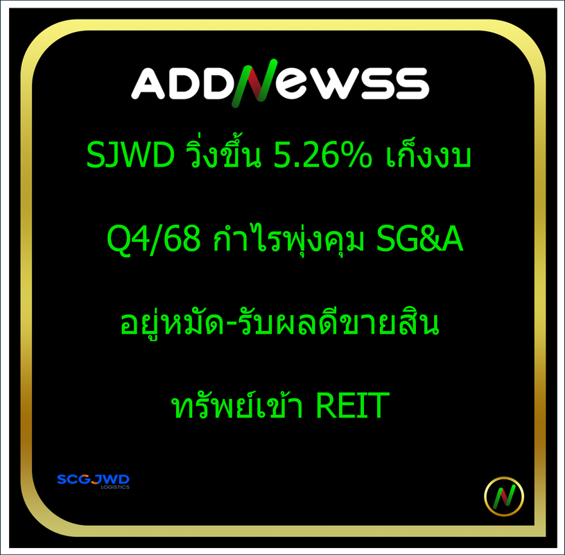 | SJWD | 09/01/25 | 9.70 | (#TH) SJWD ลุยคลังสินค้าห้องเย็น ควง SWIFT ขึ้นผู้นำมาเลเซีย |