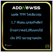 | TFM | 01/07/25 | 4.72 | (#TH) TFM ทุ่ม 300 ล. ลงทุนกำลังผลิต รับดีมานด์อาหารกุ้ง ปลา โตแรง |