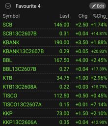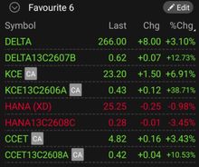 | Symbol | Last | Chg | %Chg | Hi | Low | Volume | Value | Date | Time | ☰ |