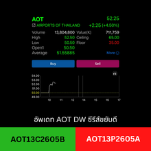 | THAI | 07/08/25 | 13.60 | (#KH) บินไทยเซ็นร่วมมือ AAR เดินหน้าศูนย์ซ่อมอู่ตะเภา THAI |