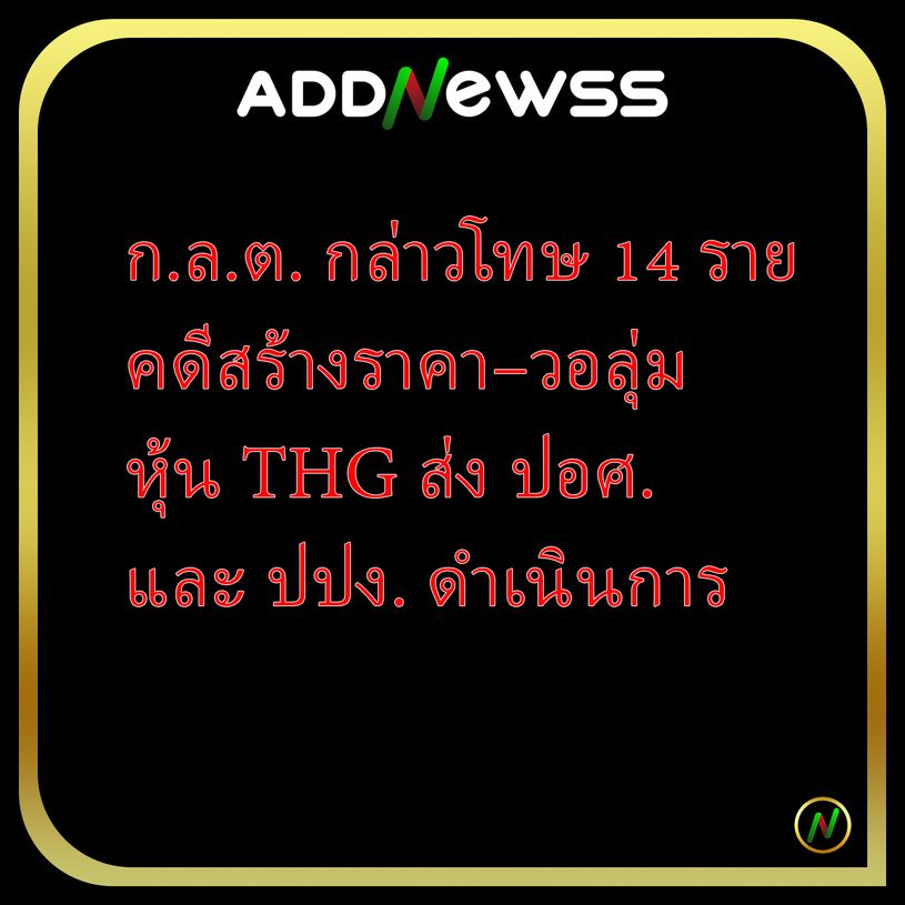 | THG | 08/10/24 | 21.50 | (#KH) หึ่ง ‘ธนาธิป’ พ้นซีอีโอ THG จับตา ‘หมอไพบูลย์’ นั่งแทน |