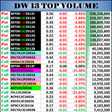| Symbol | Last | Chg | %Chg | Hi | Low | Volume | Value | Date | Time | ☰ |