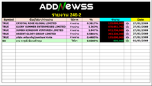 | true | 30/12/24 | 11.00 | (#KH) TRUE ชำระค่าประมูล คลื่นความถี่ 900 MHz งวดที่ 7 กว่า 4 พันล้าน |