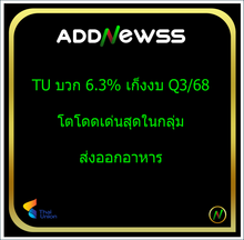 | TU | 07/11/24 | 15.30 | (#TH) TU โกยกำไร 1.4 พันล. ตลาดต่างแดนดีด ดีมานด์พุ่ง ต้นทุนลด |