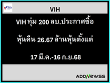 | VIH | 26/12/24 | 8.25 | (#TH) VIH มุ่งยกระดับสู่พรีเมียม ผุดรพ.ใหม่ขนาด 200 เตียง |