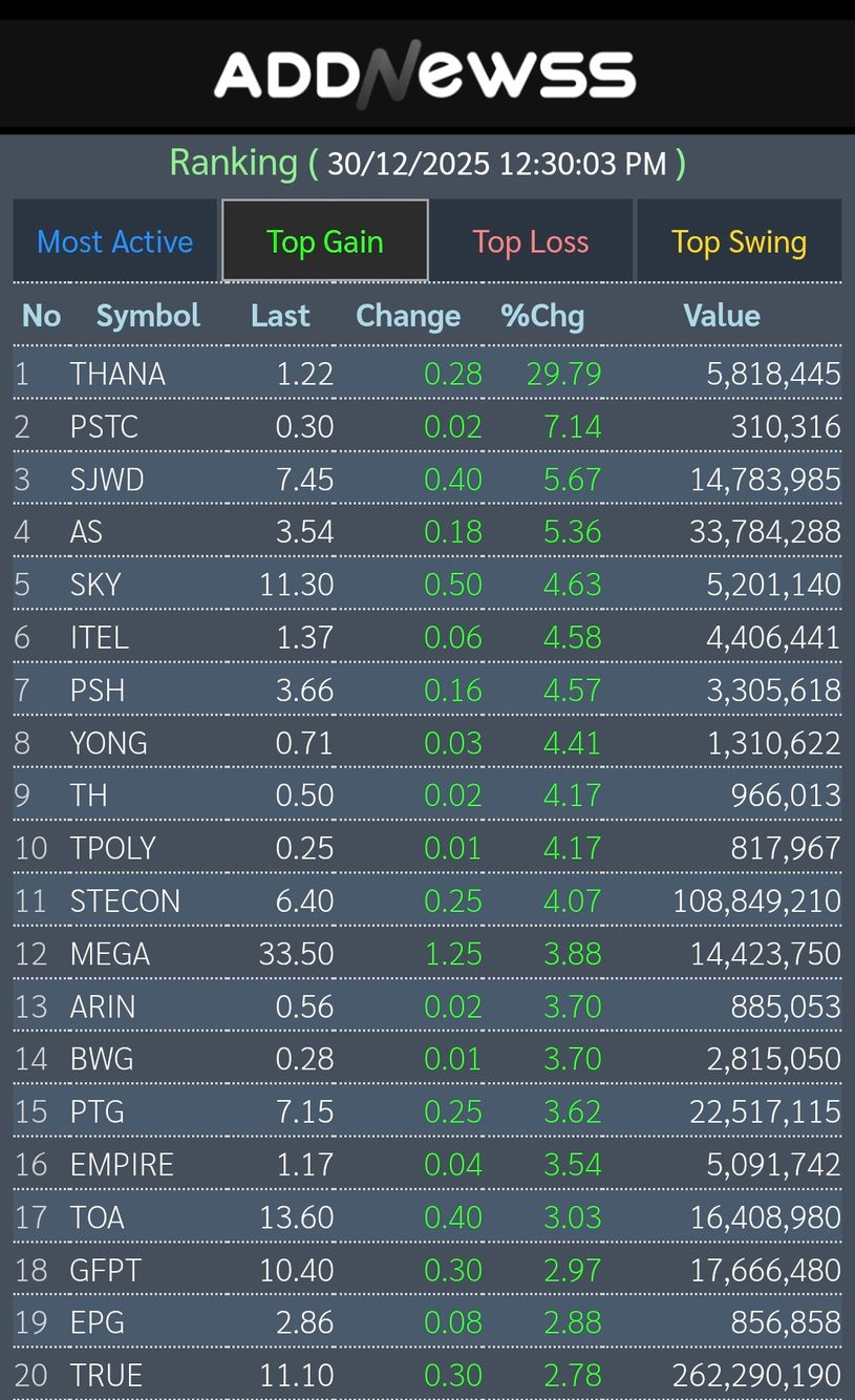 ⬆️สูงสุดที่ 1,259.31 / +5.28 จุด