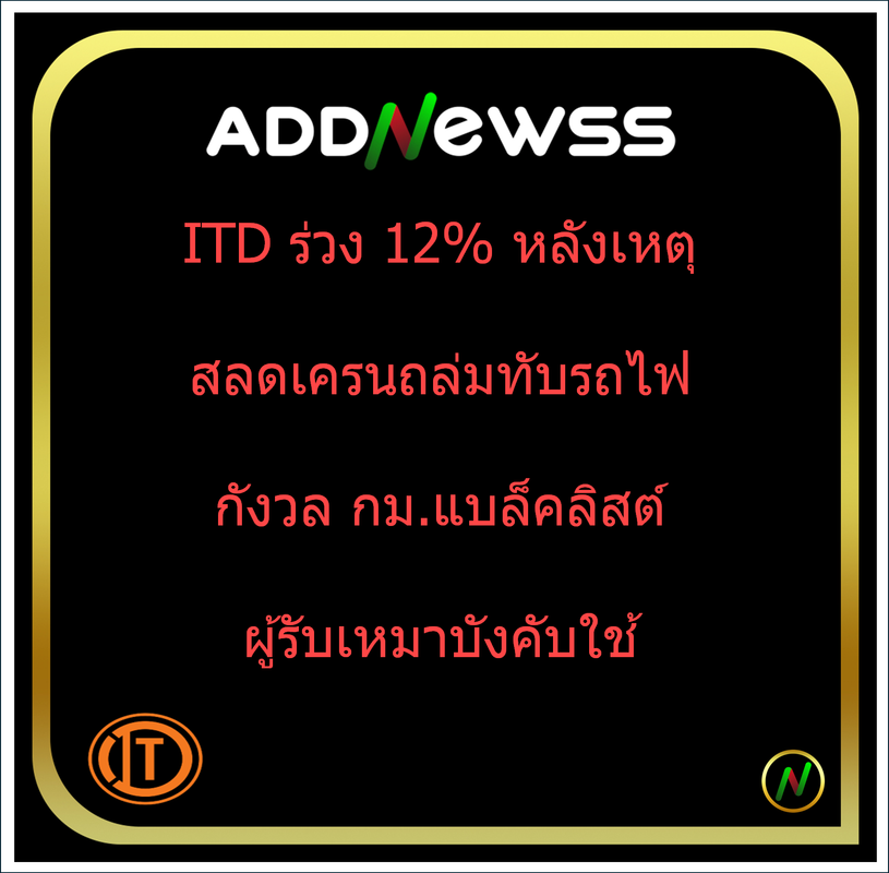 IQ > -ITD ร่วง 12% หลังเหตุสลดเครนถล่มทับรถไฟ กังวล กม.แบล็คลิสต์ผู้รับเหมาบังคับใช้
