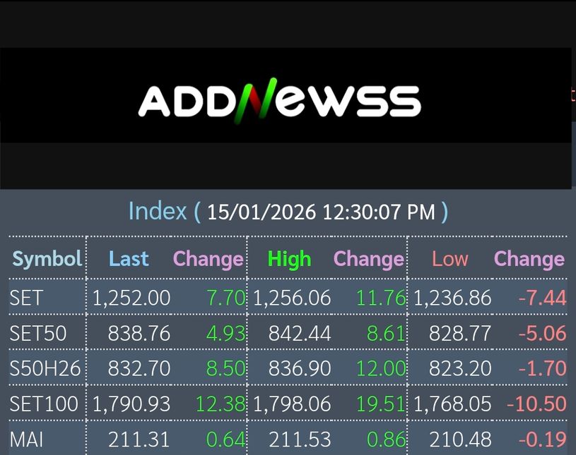 📊เช้าวันนี้ดัชนีตลาดหุ้นไทยปิดที่ 1,252.00 เพิ่มขึ้น +7.70 จุด หรือ +0.62%