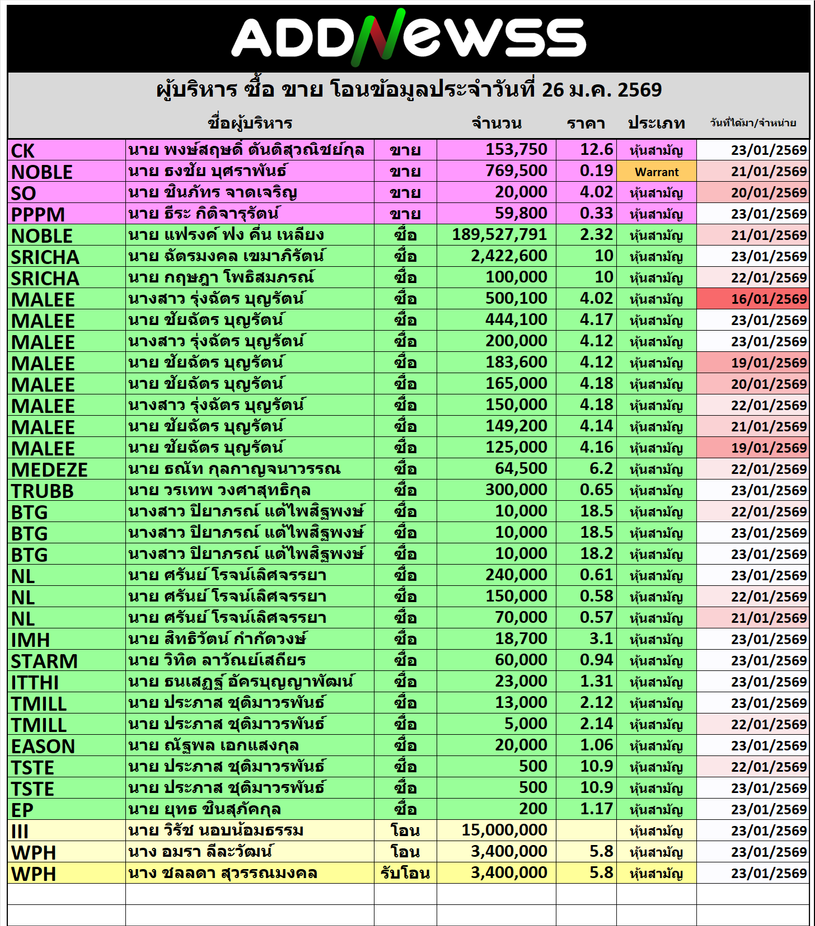 🔥🔥สรุปผู้บริหาร ซื้อ ขาย โอน