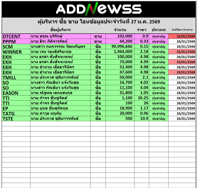🔥🔥สรุปผู้บริหาร ซื้อ ขาย โอน