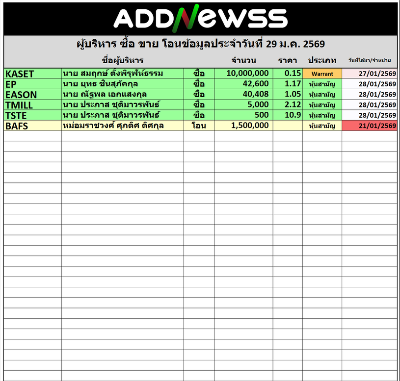 🔥🔥สรุปผู้บริหาร ซื้อ ขาย โอน