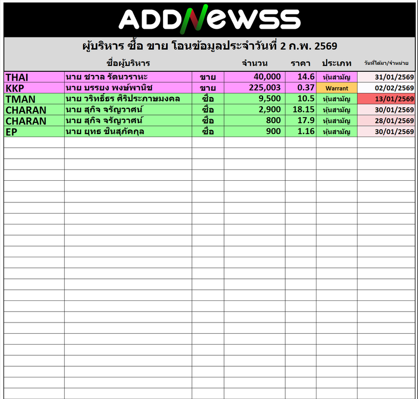 🔥🔥สรุปผู้บริหาร ซื้อ ขาย โอน