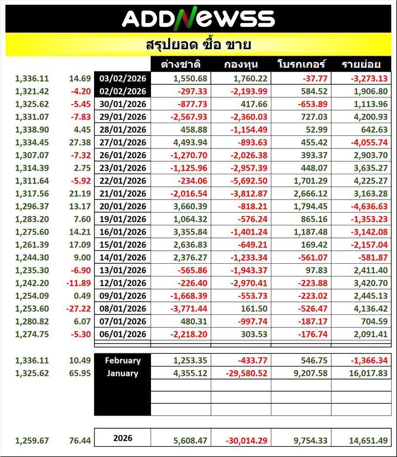 🔥🔥สรุปยอด 🟢ซื้อ🟢🔴 ขาย🔴 📅03/02/2026 📅 2026-02-03 17:26 ✎ administrator 🗇 SUM 👍 - แชร์โพสต์นี้ 🔥🔥สรุปยอด 🟢ซื้อ🟢🔴 ขาย🔴 📅03/02/2026