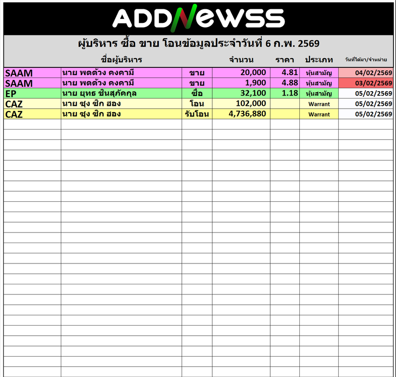 🔥🔥สรุปผู้บริหาร ซื้อ ขาย โอน