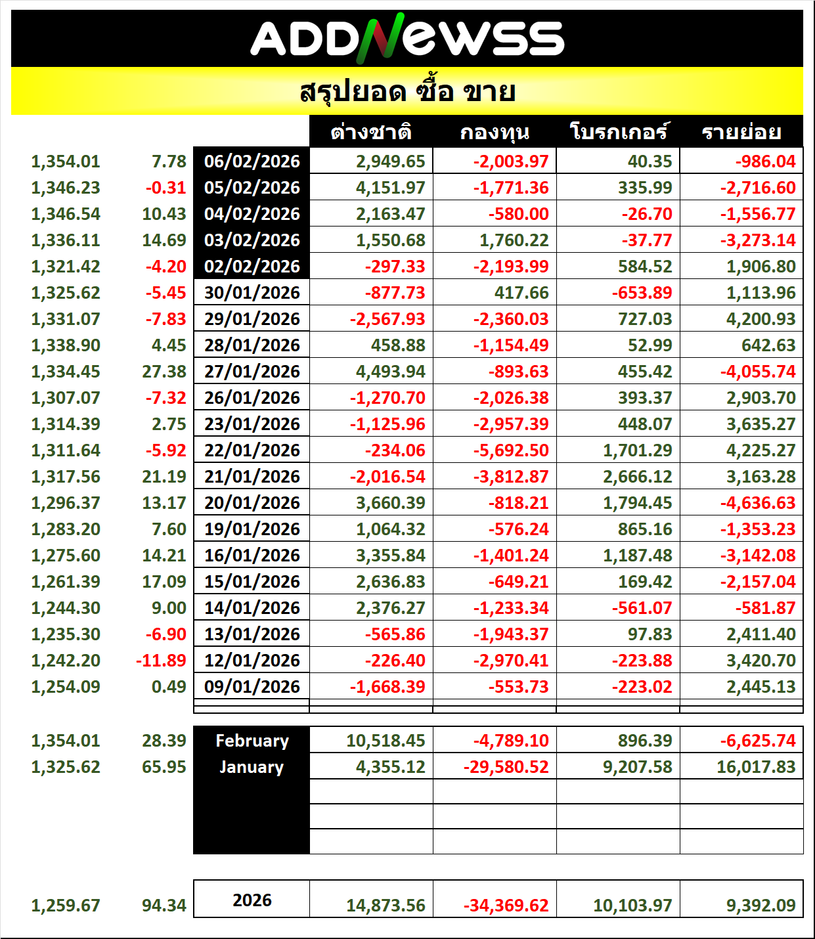 🔥🔥สรุปยอด 🟢ซื้อ🟢🔴 ขาย🔴 📅06/02/2026 📅 2026-02-06 17:27 ✎ administrator 🗇 SUM 👍 - แชร์โพสต์นี้ 🔥🔥สรุปยอด 🟢ซื้อ🟢🔴 ขาย🔴 📅06/02/2026