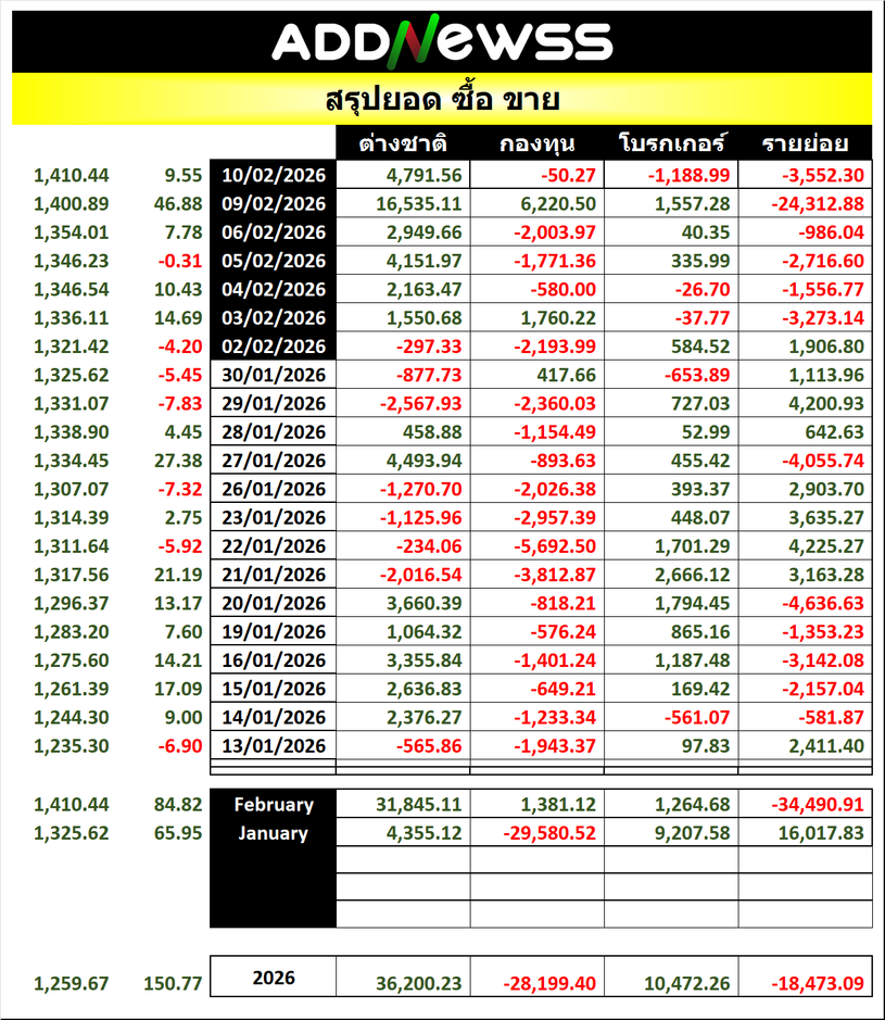 🔥🔥สรุปยอด 🟢ซื้อ🟢🔴 ขาย🔴 📅10/02/2026 📅 2026-02-10 17:24 ✎ administrator 🗇 SUM 👍 - แชร์โพสต์นี้ 🔥🔥สรุปยอด 🟢ซื้อ🟢🔴 ขาย🔴 📅10/02/2026