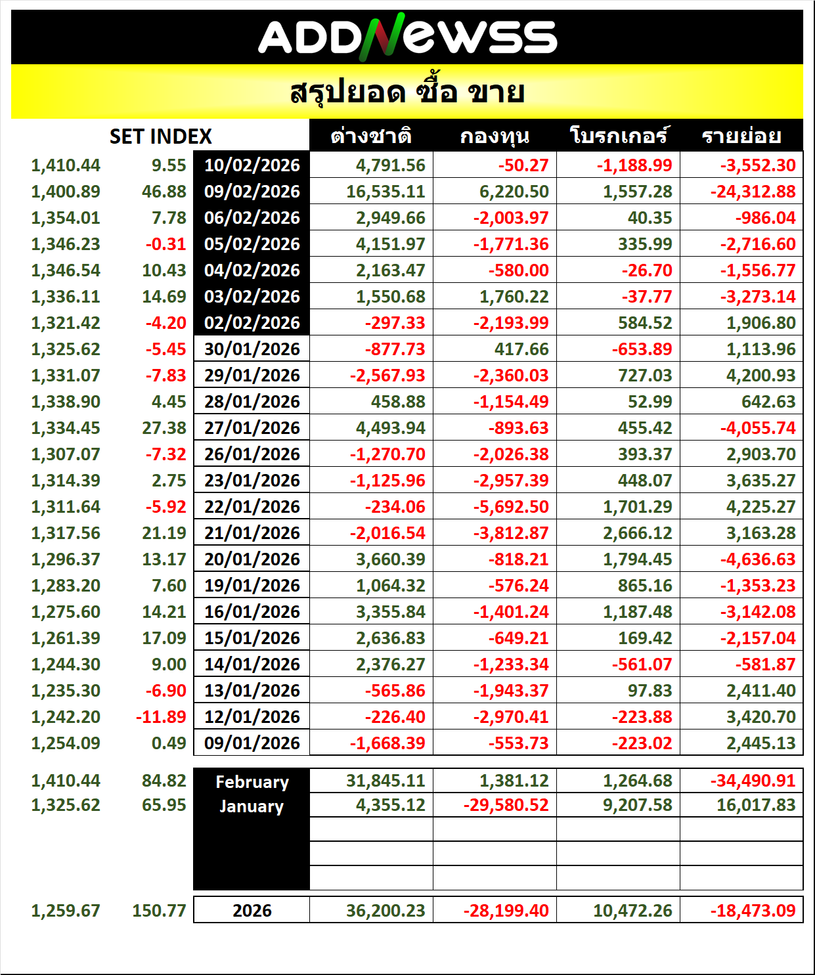 🔥🔥สรุปยอด 🟢ซื้อ🟢🔴 ขาย🔴 📅10/02/2026 📅 2026-02-10 18:38 ✎ administrator 🗇 SUM 👍 - แชร์โพสต์นี้ 🔥🔥สรุปยอด 🟢ซื้อ🟢🔴 ขาย🔴 📅10/02/2026