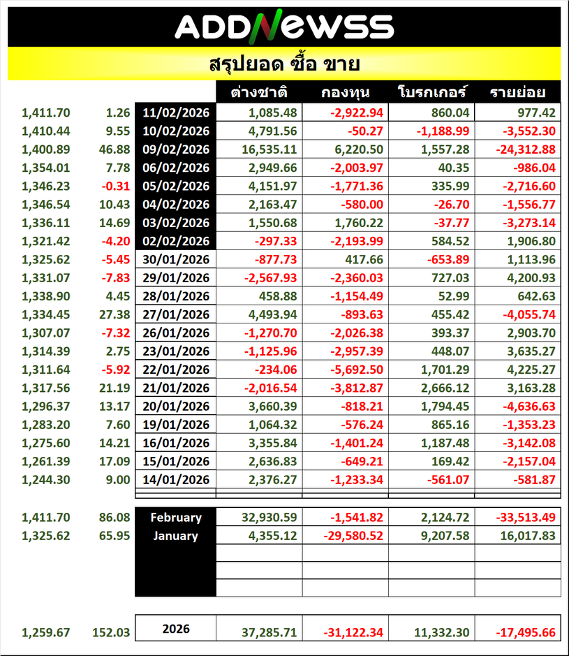 🔥🔥สรุปยอด 🟢ซื้อ🟢🔴 ขาย🔴 📅11/02/2026 📅 2026-02-11 17:23 ✎ administrator 🗇 SUM 👍 - แชร์โพสต์นี้ 🔥🔥สรุปยอด 🟢ซื้อ🟢🔴 ขาย🔴 📅11/02/2026