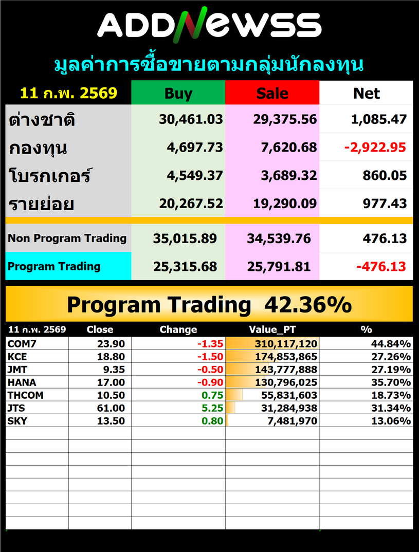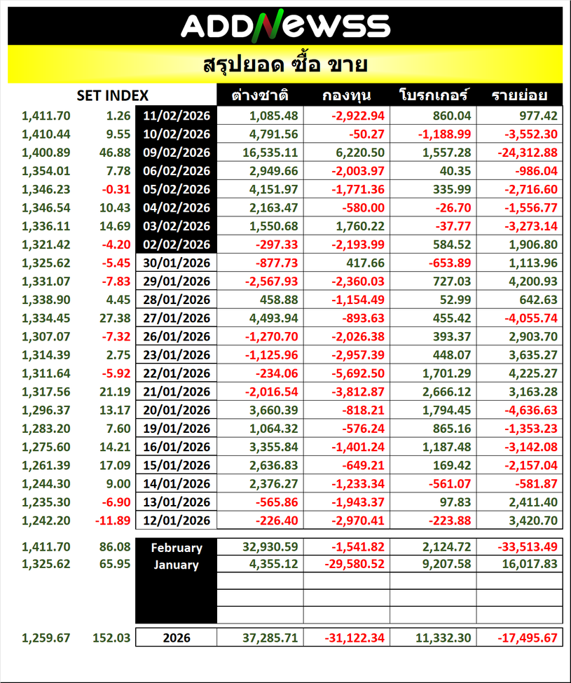 🔥🔥สรุปยอด 🟢ซื้อ🟢🔴 ขาย🔴 📅11/02/2026 📅 2026-02-11 19:15 ✎ administrator 🗇 SUM 👍 - แชร์โพสต์นี้ 🔥🔥สรุปยอด 🟢ซื้อ🟢🔴 ขาย🔴 📅11/02/2026