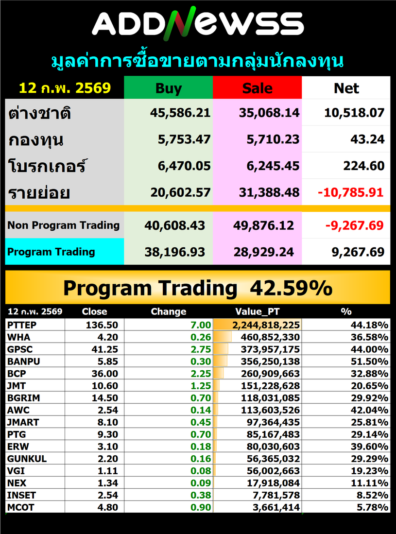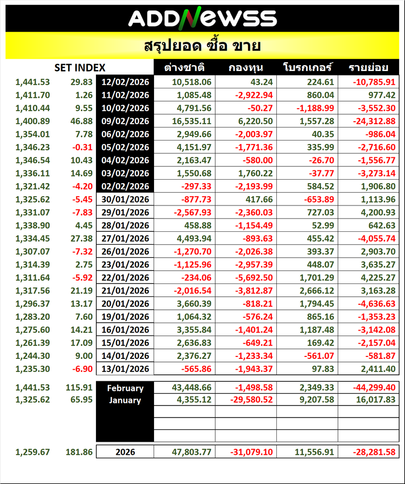 🔥🔥สรุปยอด 🟢ซื้อ🟢🔴 ขาย🔴 📅12/02/2026 📅 2026-02-12 18:38 ✎ administrator 🗇 SUM 👍 - แชร์โพสต์นี้ 🔥🔥สรุปยอด 🟢ซื้อ🟢🔴 ขาย🔴 📅12/02/2026