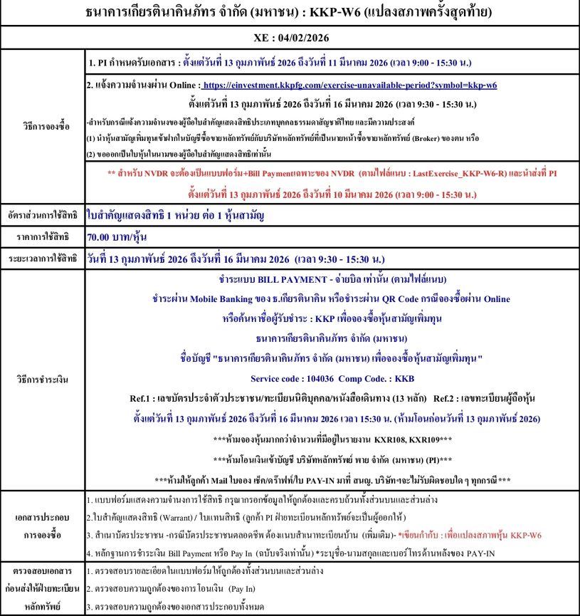 รายละเอียดการใช้สิทธิแปลงสภาพหุ้น : KKP-W6, KKP-W6-R (ครั้งสุดท้าย)