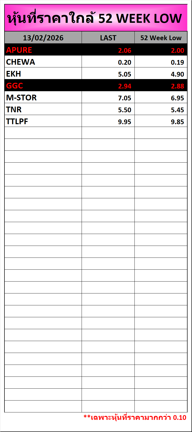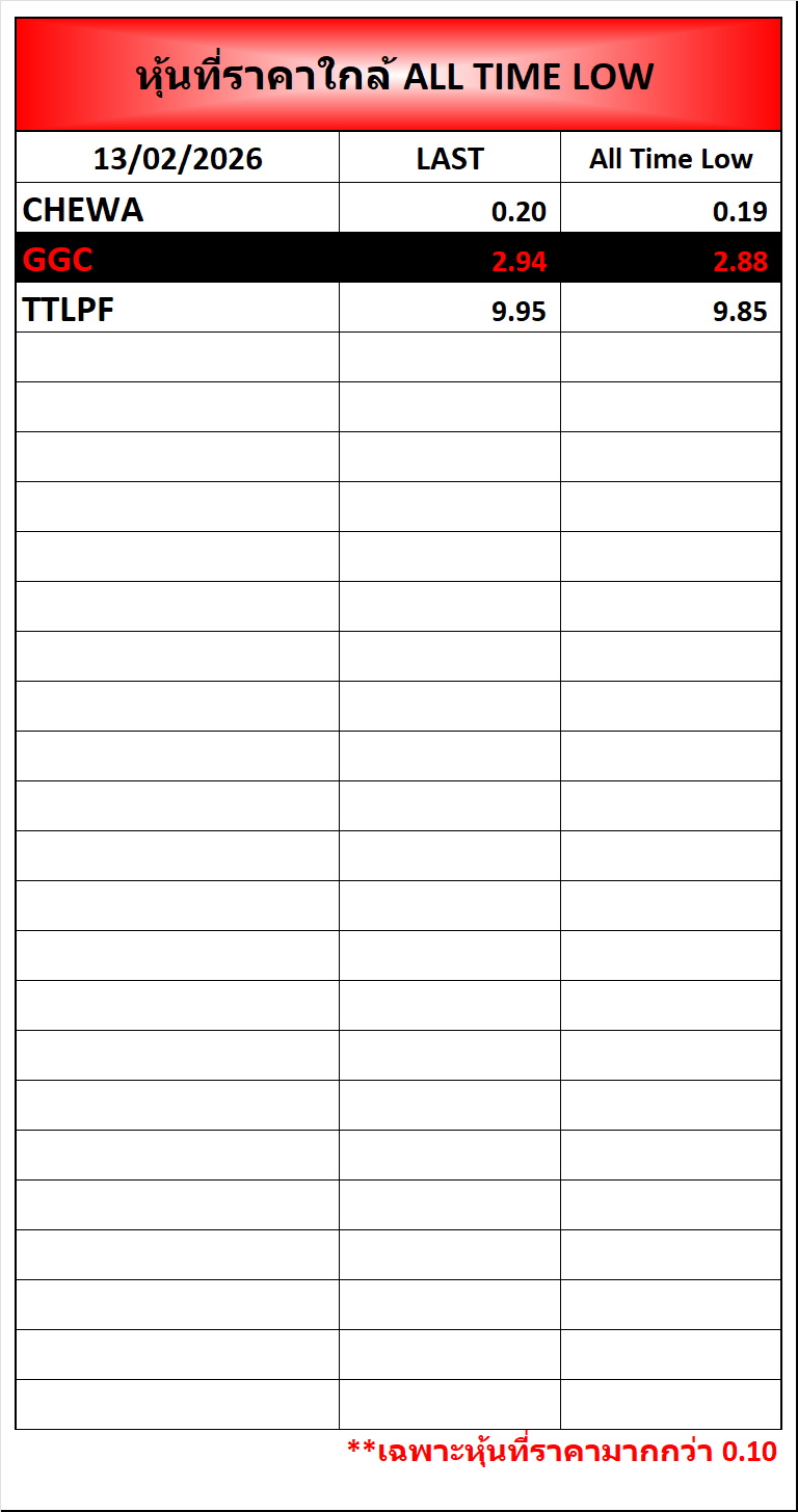 ⭐🔥หุ้นที่ราคาใกล้ ALL TIME 🟢High 🔴Low 📅13/02/2026