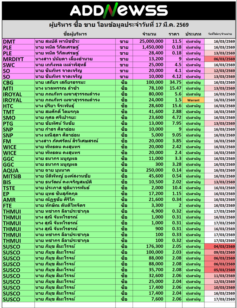 🔥🔥สรุปผู้บริหาร ซื้อ ขาย โอน