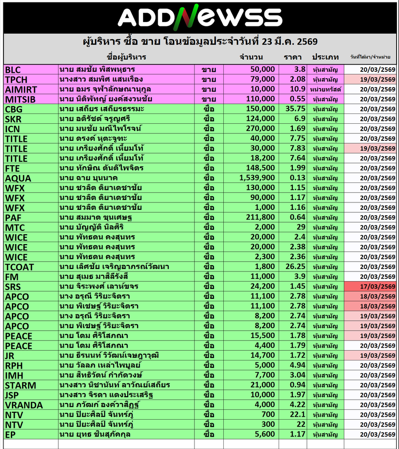 🔥🔥สรุปผู้บริหาร ซื้อ ขาย โอน