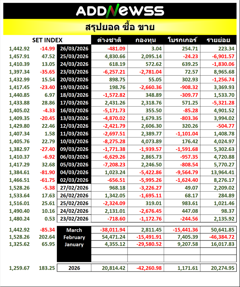 🔥🔥สรุปยอด 🟢ซื้อ🟢🔴 ขาย🔴 📅26/03/2026 📅 2026-03-26 18:49 ✎ administrator 🗇 SUM 👍 - แชร์โพสต์นี้ 🔥🔥สรุปยอด 🟢ซื้อ🟢🔴 ขาย🔴 📅26/03/2026