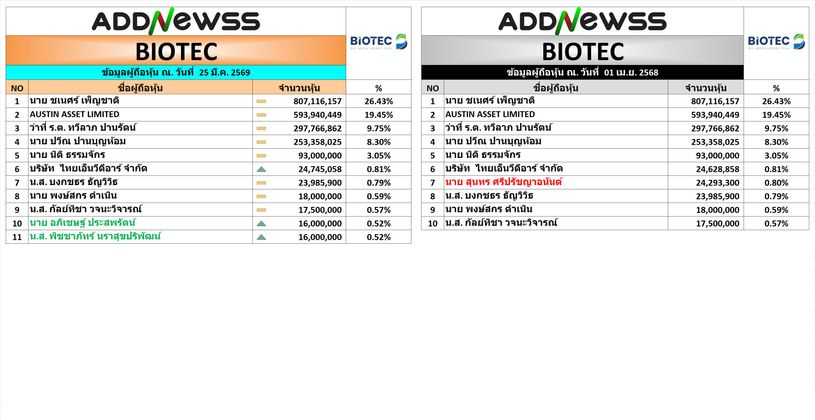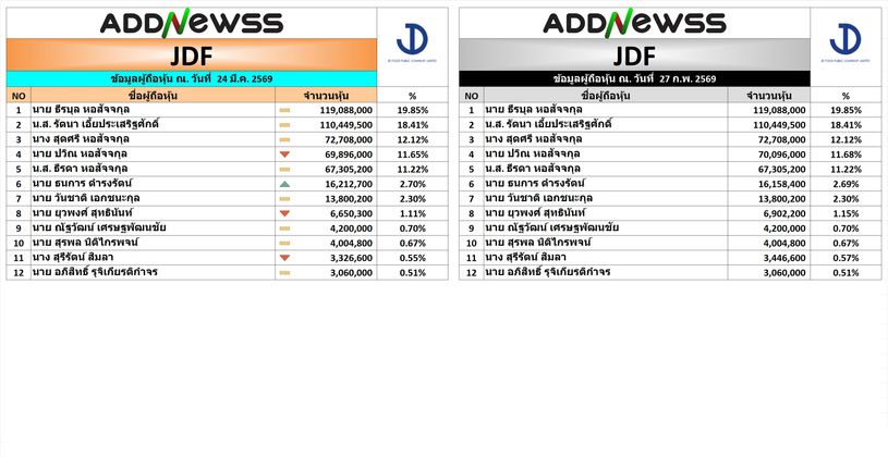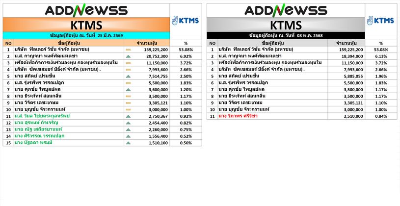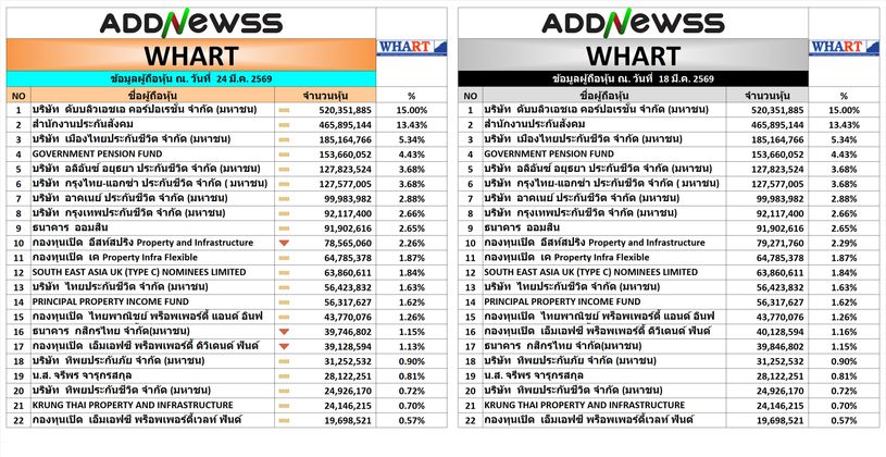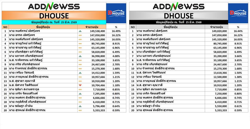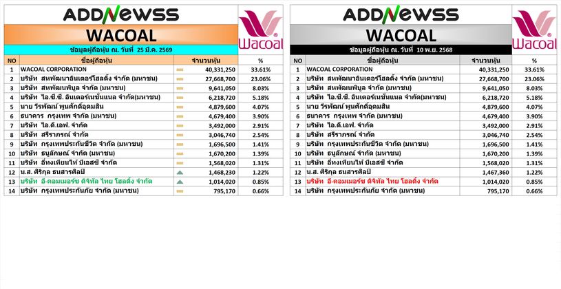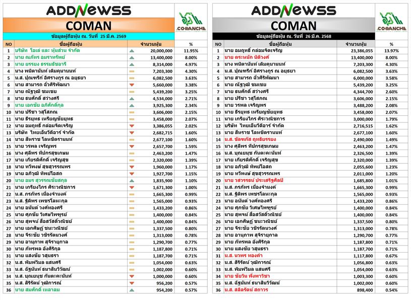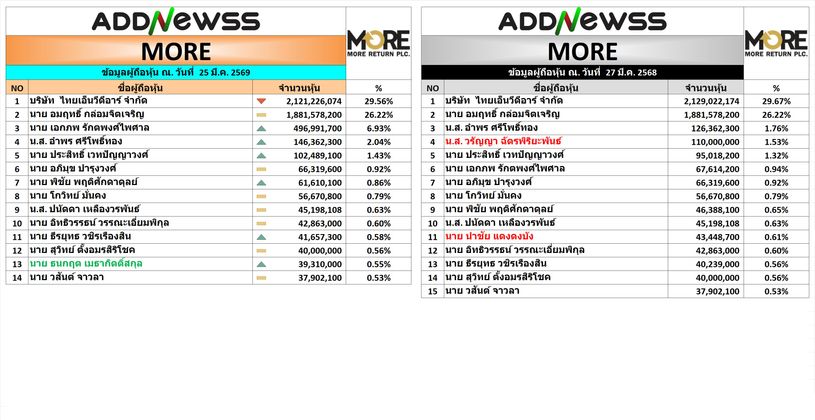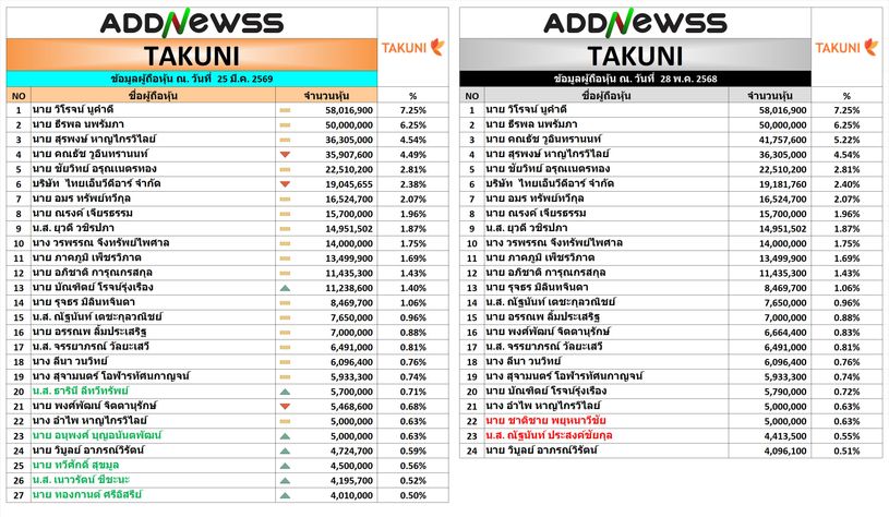 📊 ผู้ถือหุ้นใหญ่มีการเปลี่ยนแปลง
