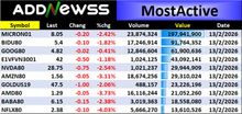 | Symbol | Last | Chg | %Chg | Hi | Low | Volume | Value | Date | Time | ☰ |